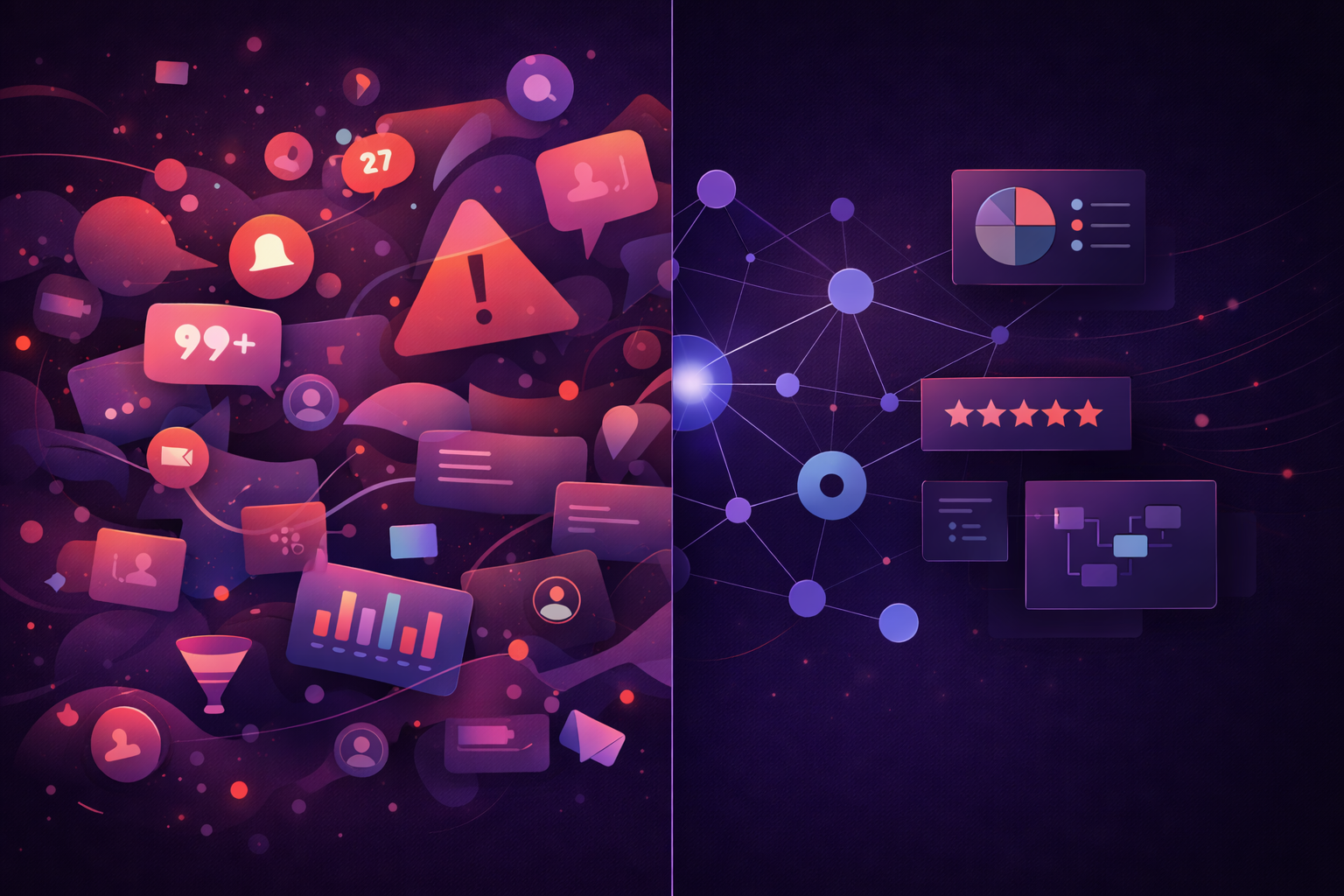 Email, push notifications, text messages, in-app messages, webhooks: automated and powered by your data.